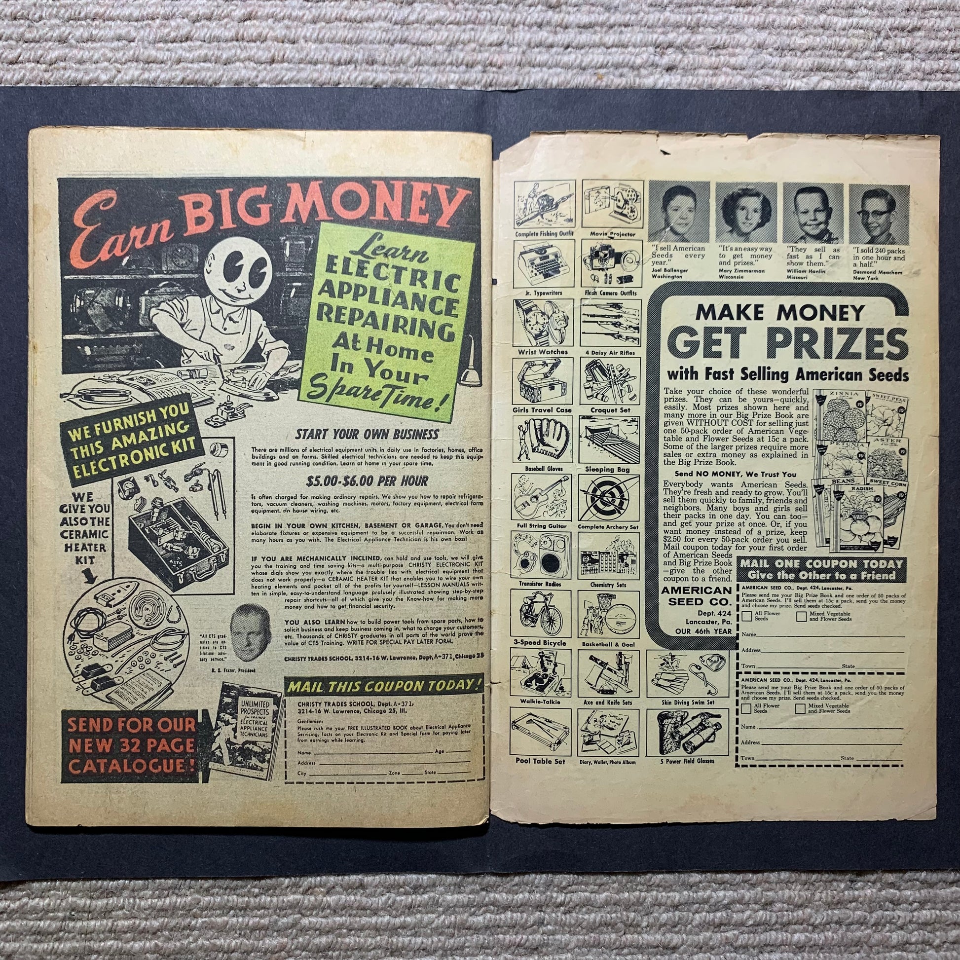 Good condition although the cover has a large tear as seen in photos, lays flat, good colours and Complete with no cutouts.